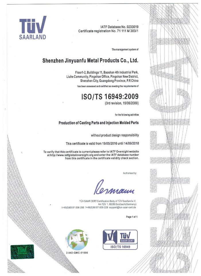 專(zhuān)注于鋁合金壓鑄件,獲得ISO9001:2008/ISO1440/TS16949:2009等專(zhuān)業(yè)資質(zhì)